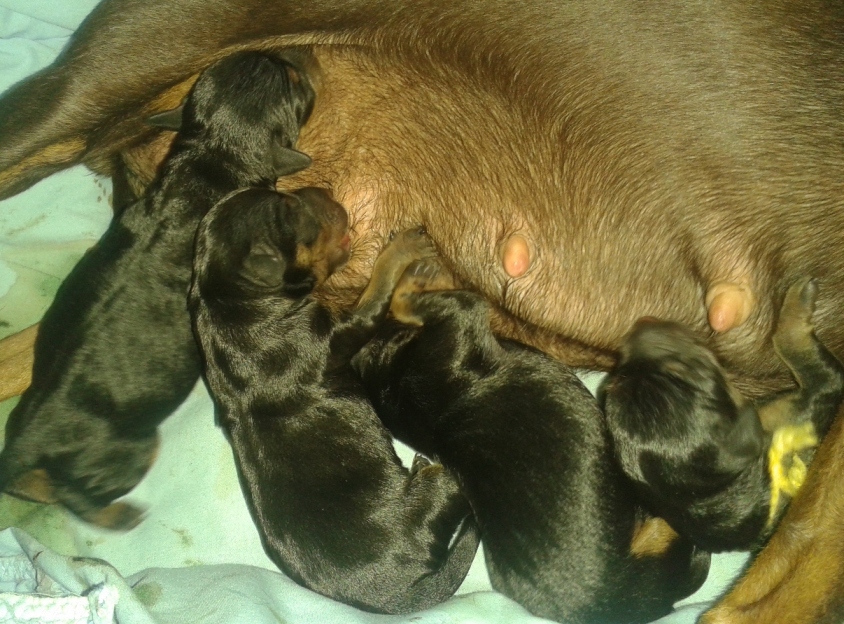 Am Sonntag Morgen hat sie drei gesunde, schnuselige Welpchen zur Welt gebracht