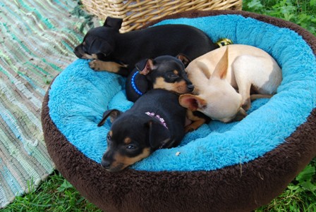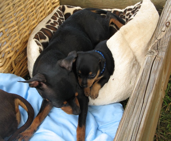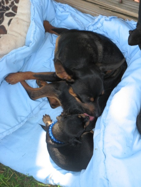 Welpenbettchen... richtig verteilt haben beide irgendwie Platz